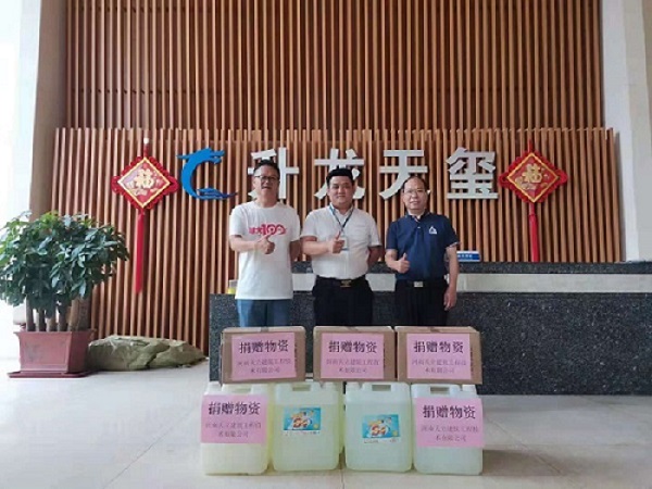 为积极预防灾后可能出现的疫情,守护员工的生命安全和身体健康,2021年7月28日下午,高董事长向市区办公室所在地升龙天玺物业捐赠消毒物资。作为“天立人”的带头人,高董事长始终表示在灾难面前,企业要承担相应的社会责任,有义务积极投入到灾后防护工作中,力所能及回报社会。